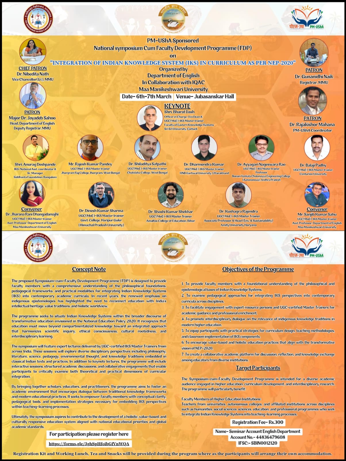 PM USHA Sponsered National Symposium cum faculty Development Programme on "Integration of Indian Knowledge System (IKS) in curriculam as per NEP-2020"