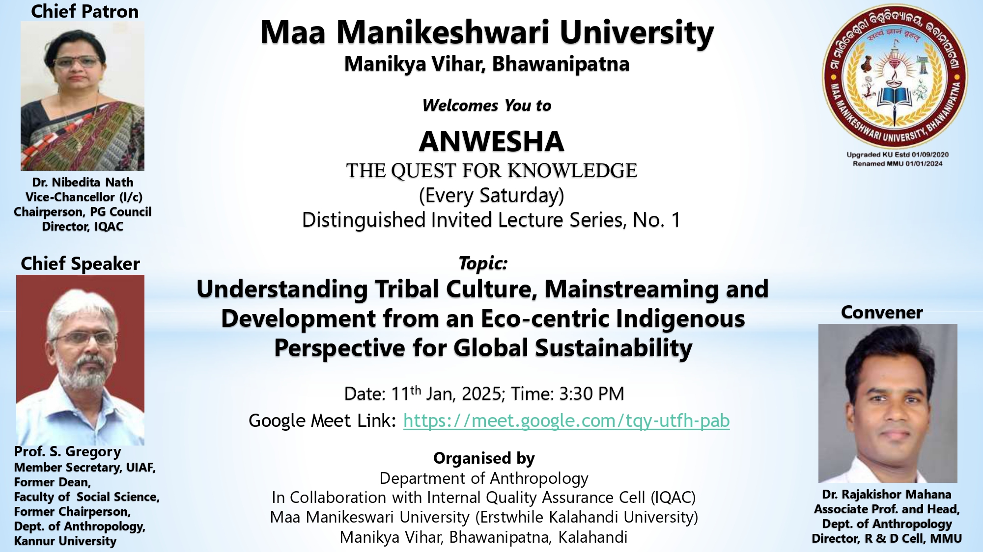 Topic: Understanding Tribal Culture, Mainstreaming and Development from an Eco-centric Indigenous Perspective for Global Sustainability