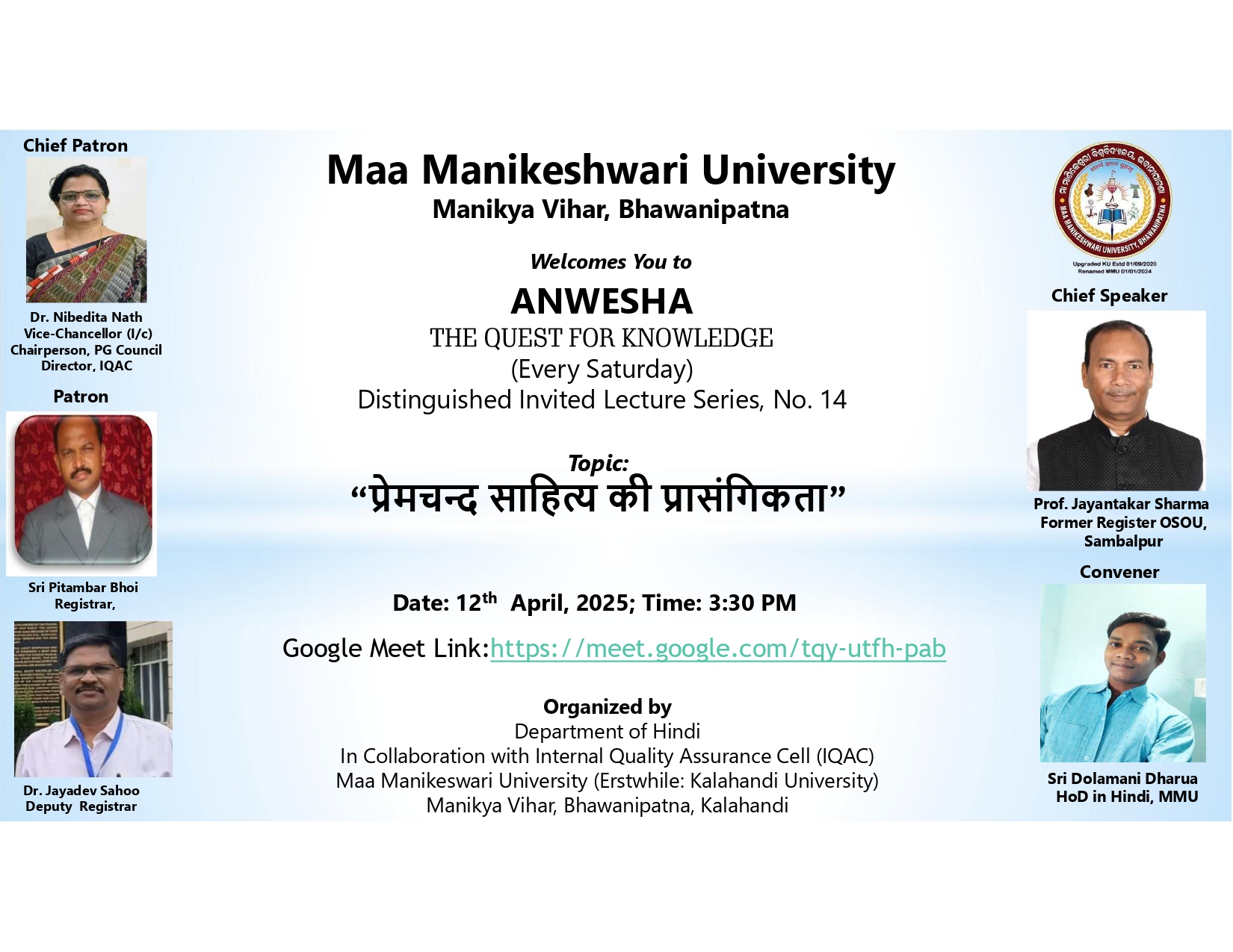 Anwesha lecture series 14 organized by Dept. of Hindi