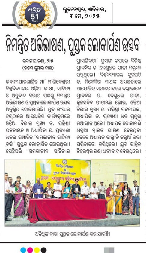Topic: ନିମନ୍ତ୍ରିତ ଅଭିଭାଷଣ ଓ ପୁସ୍ତକ ଲୋକାର୍ପଣ ଉତ୍ସବ