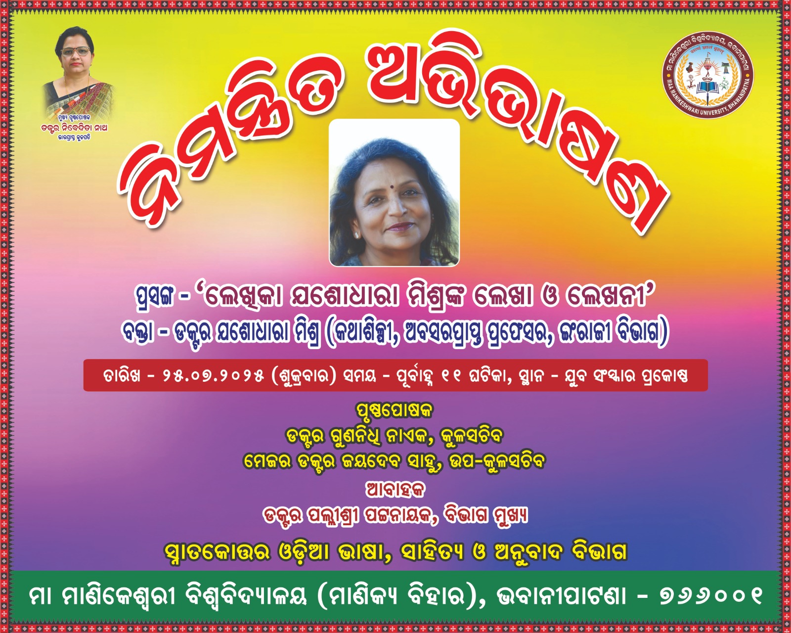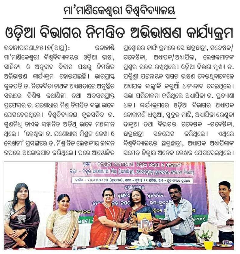 Invited Lecture by Dr. Jasodhara Mishra