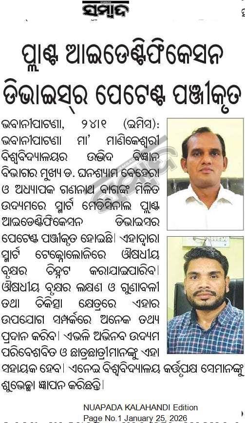 Topic: Patent of Dr. Ghanashyam Behera and Sri Gannath Bag