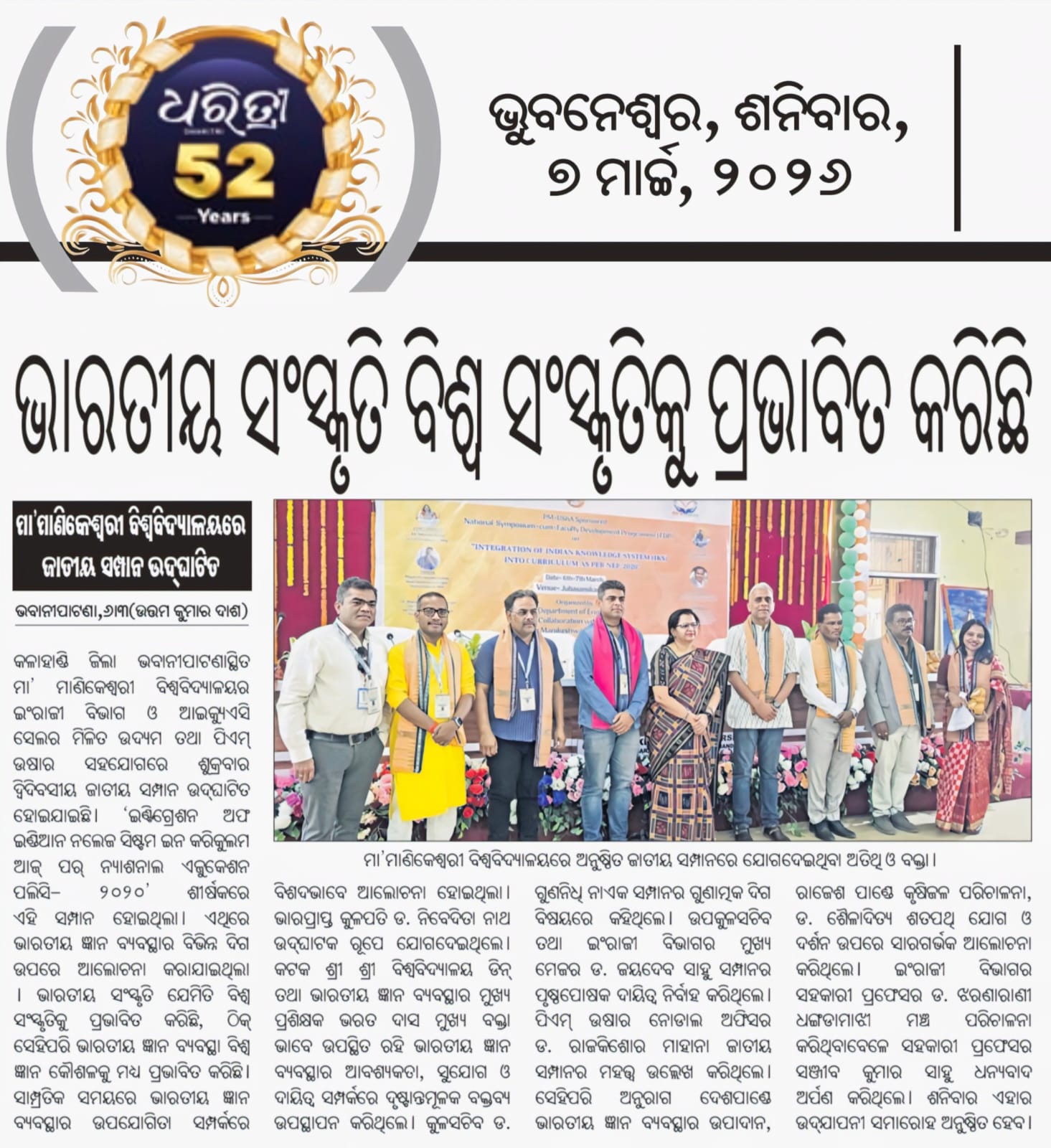 PM USHA Sponsered National Symposium cum faculty Development Programme on "Integration of Indian Knowledge System (IKS) in curriculam as per NEP-2020"